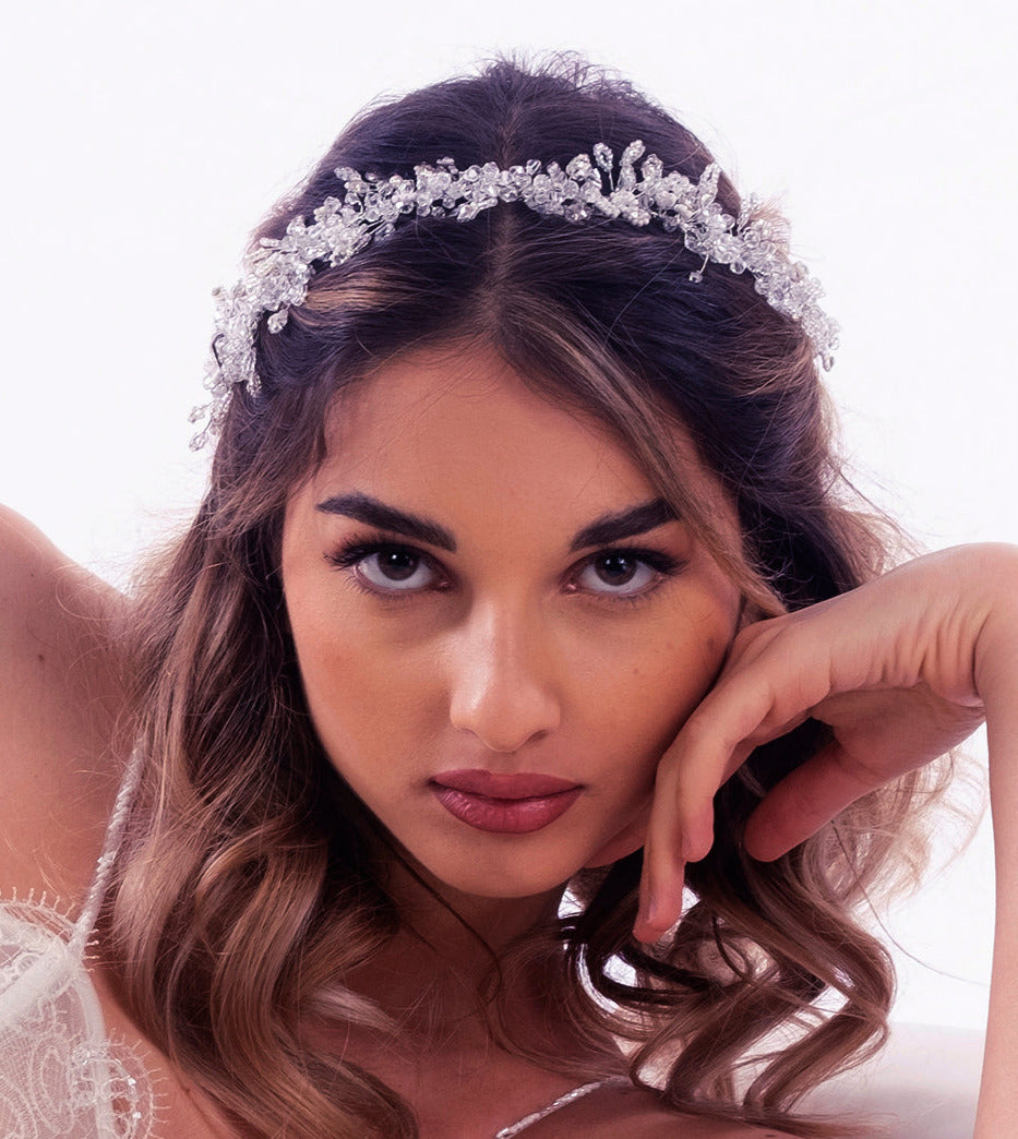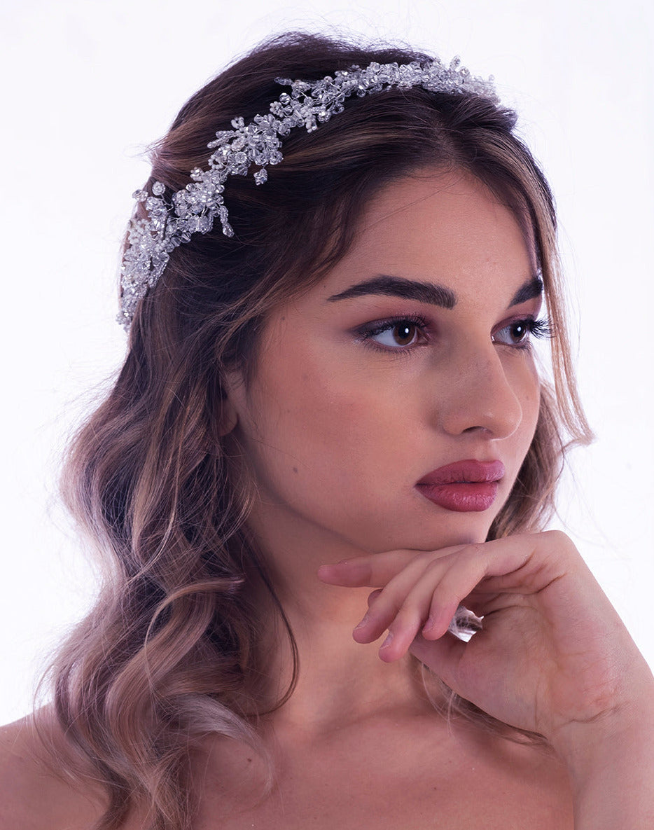 Accessorio bijoux modellabile con lavorazione ad intreccio di cristalli, conterie e strass swarovski, fatto a mano, made in italy, personalizzabile.