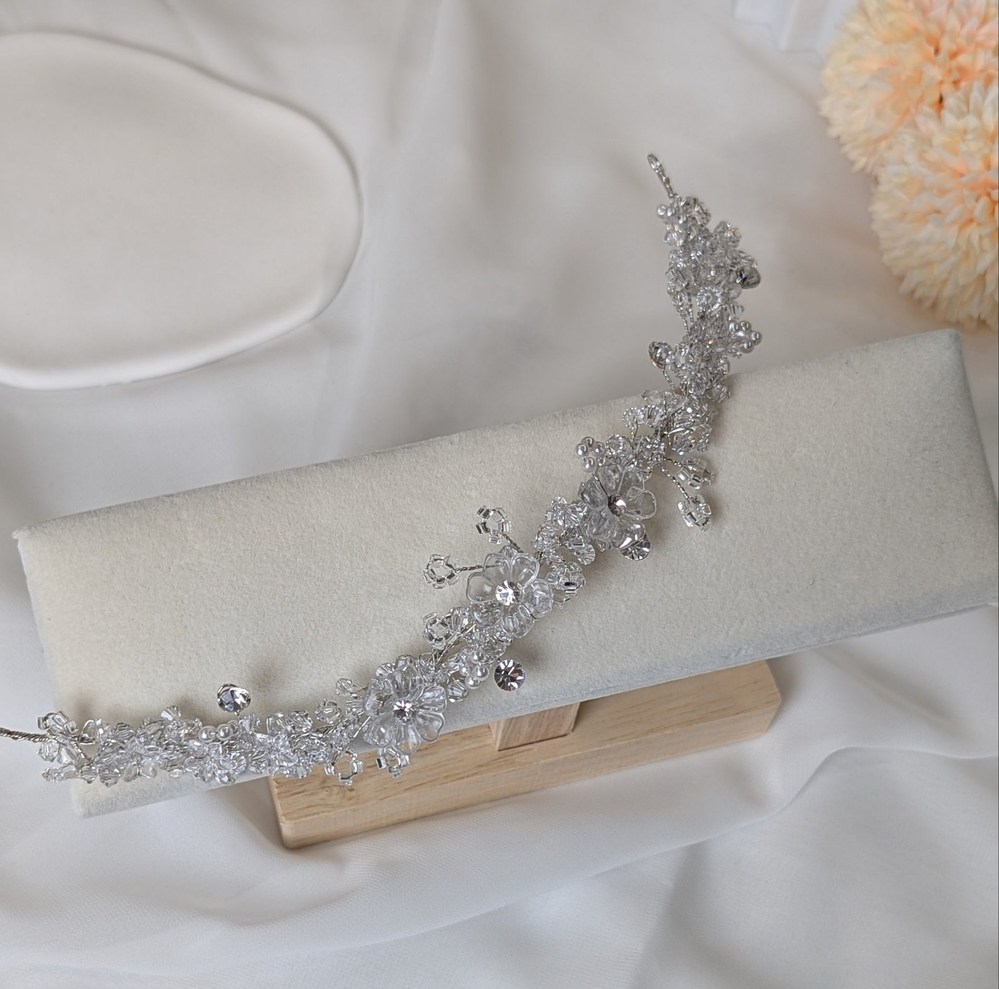 Accessorio bijoux modellabile, lavorazione con pistilli e fiorellini in cristalli swarovski, modellabile, fatto a mano, made in italy, personalizzabile.