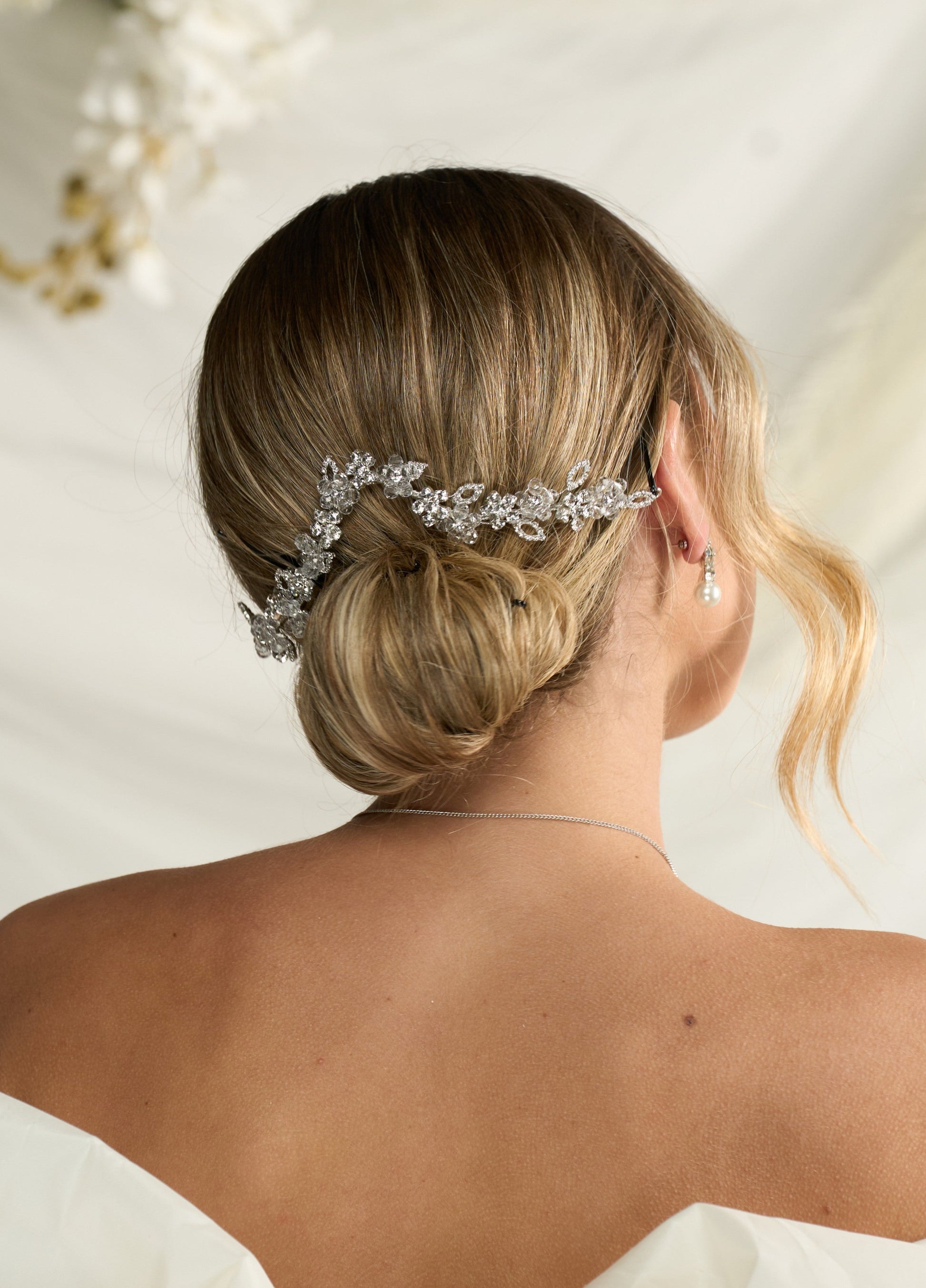 Accessorio bijoux modellabile, lavorazione con fiori e foglioline realizzati in cristalli e strass swarovski, modellabile, fatto a mano, made in italy, personalizzabile.