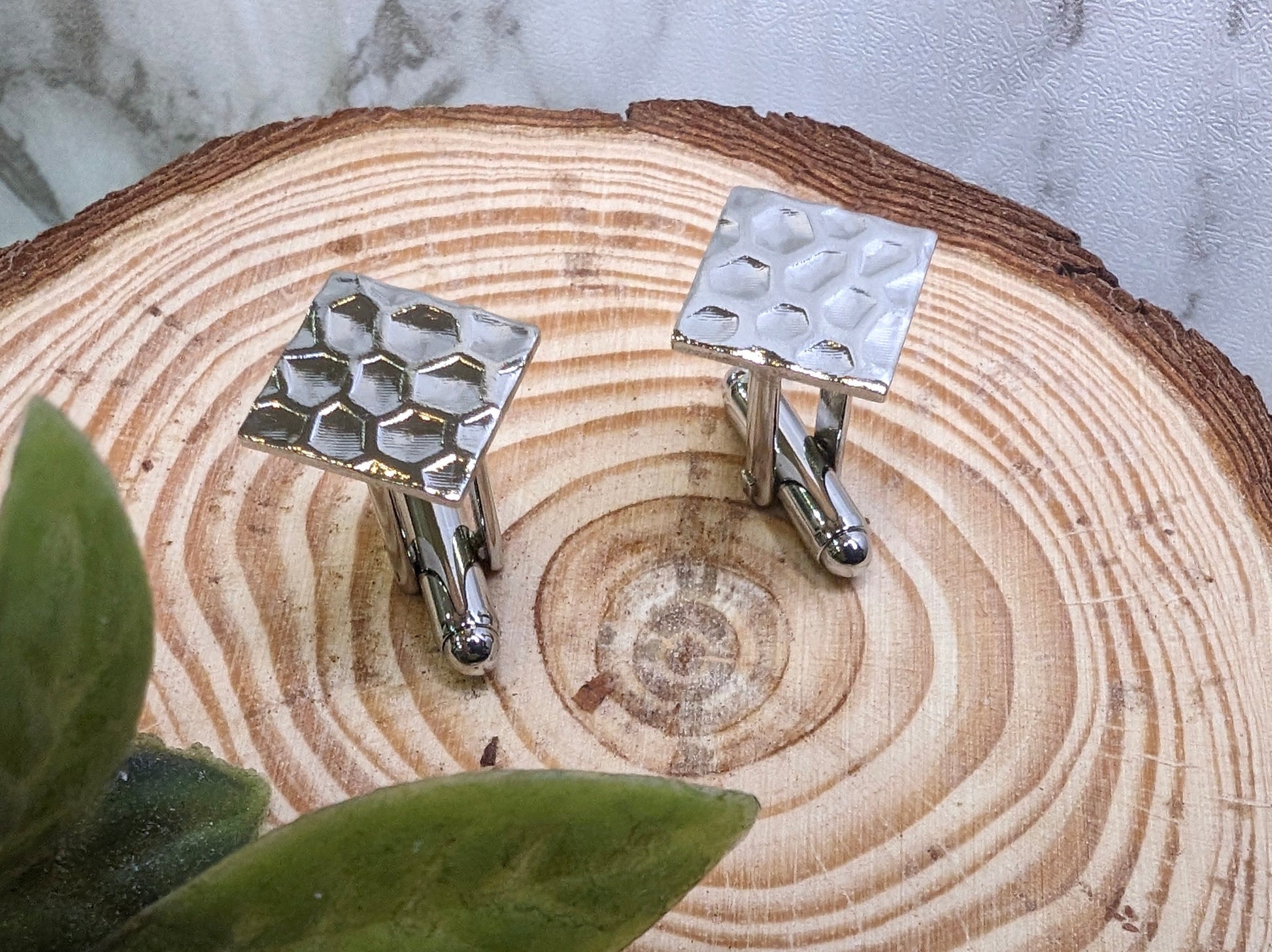 Gemelli da polso per camicia realizzati su piastra di ottone, placcato rodio, lega in stagno, nichel free.