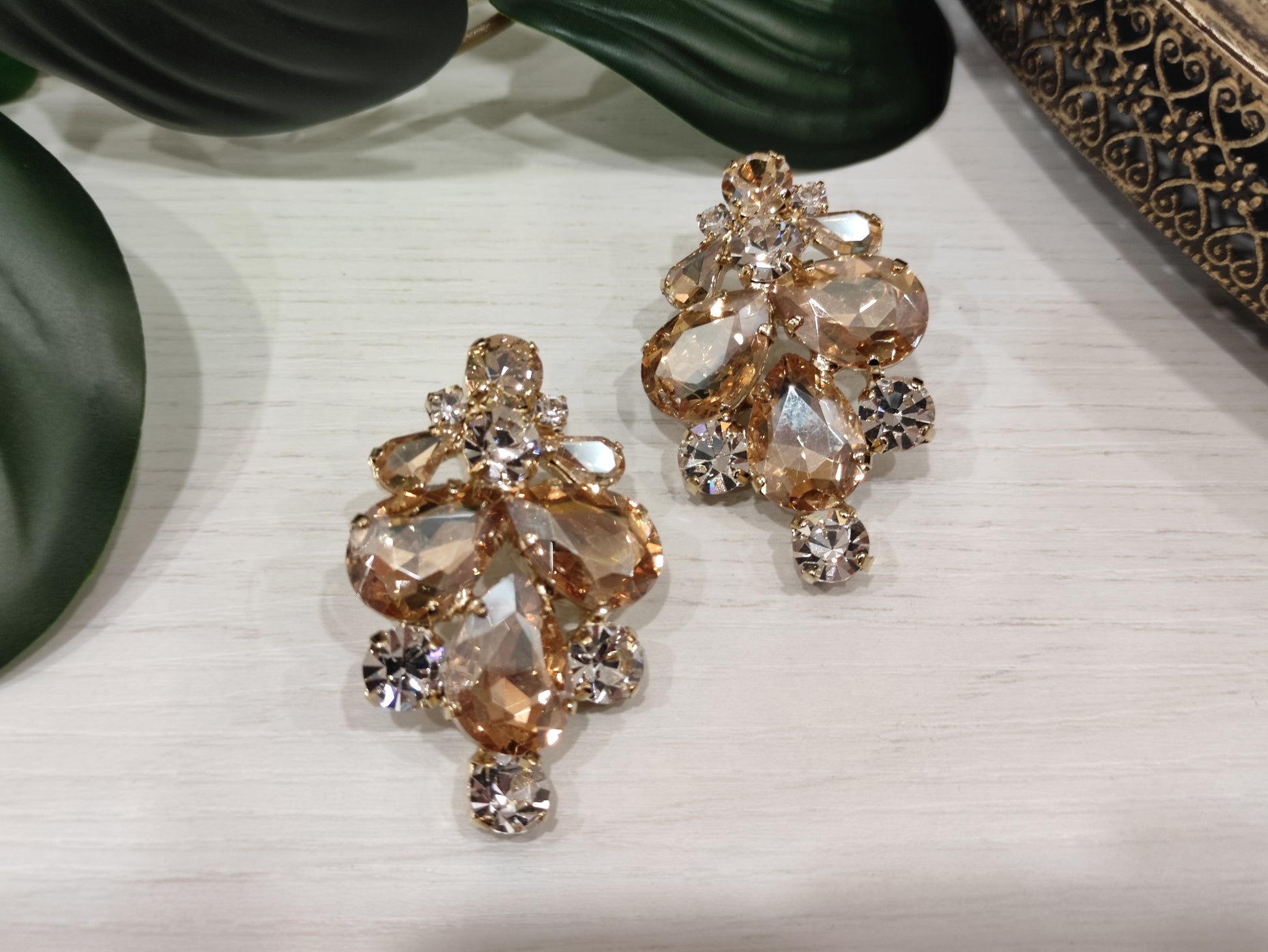 Orecchini realizzati in ottone placcato oro o argento con lega in stagno, impreziositi da strass e pietre castonate Swarovski, galvanica nickel free.