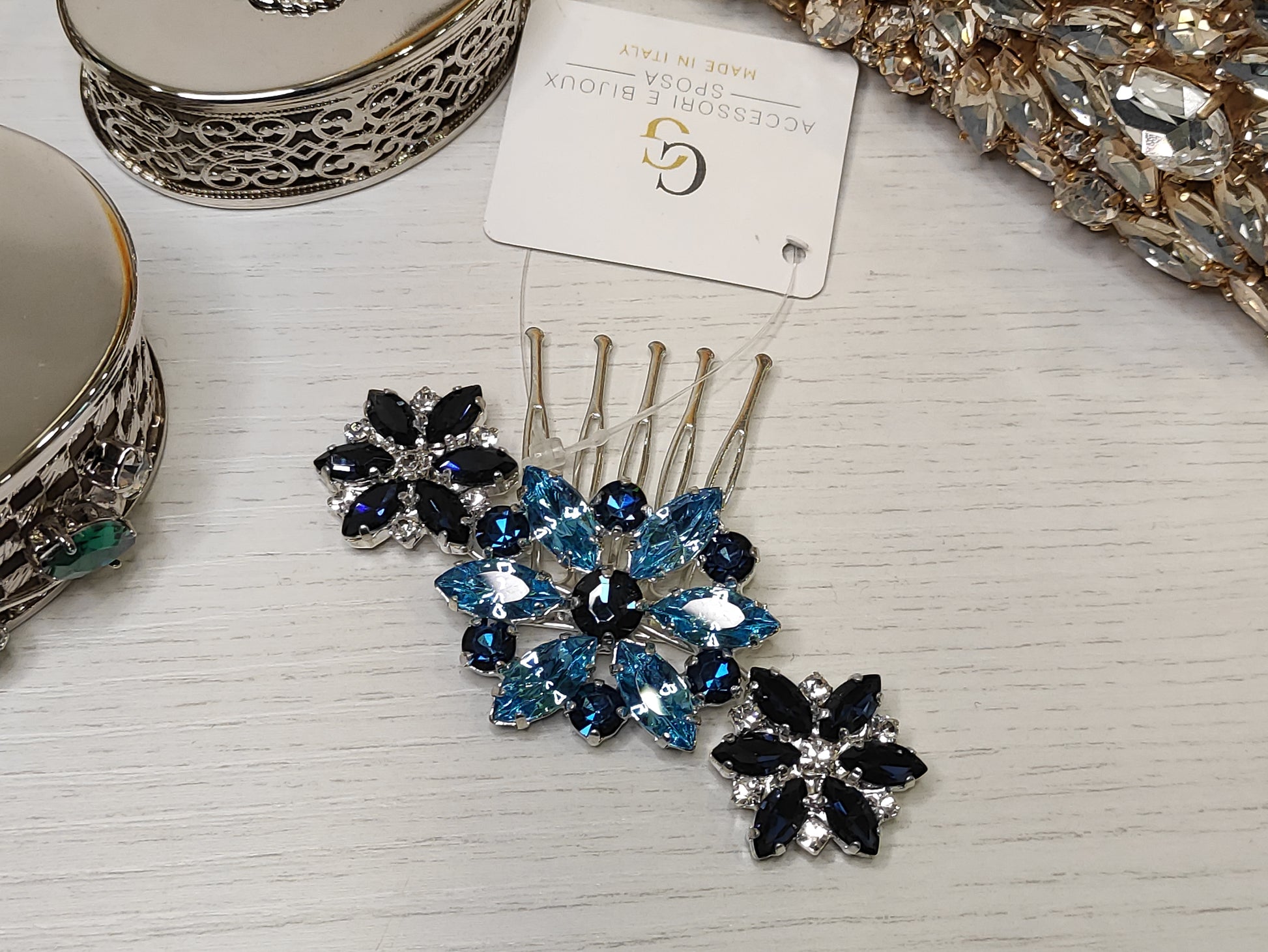 Pettinino bijoux, con lavorazione astratta di pietre swarovski castonate, fatto a mano, made in Italy, personalizzabile.