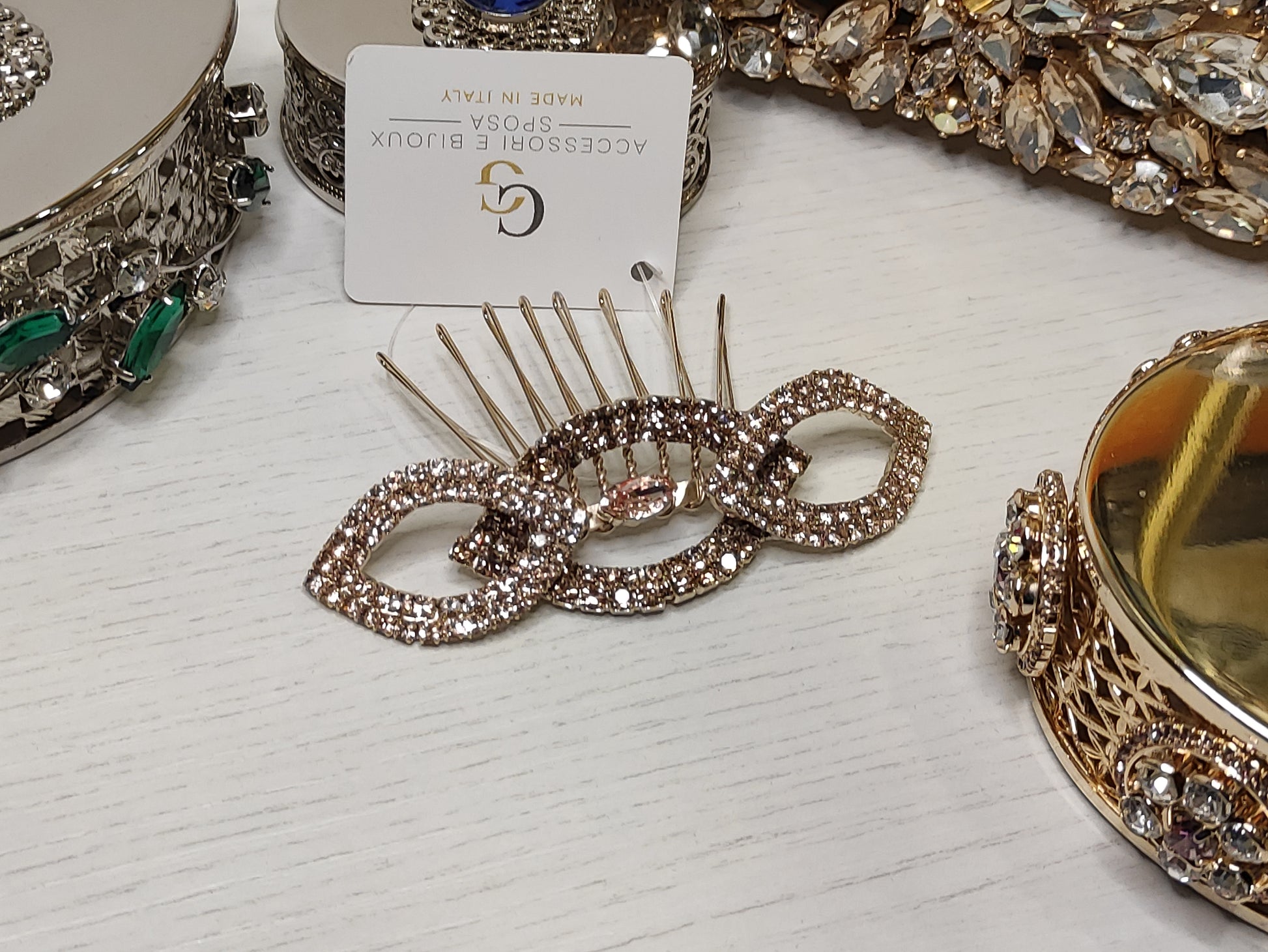 Pettinino bijoux, con lavorazione astratta in strass swarovski, fatto a mano, made in Italy, personalizzabile.