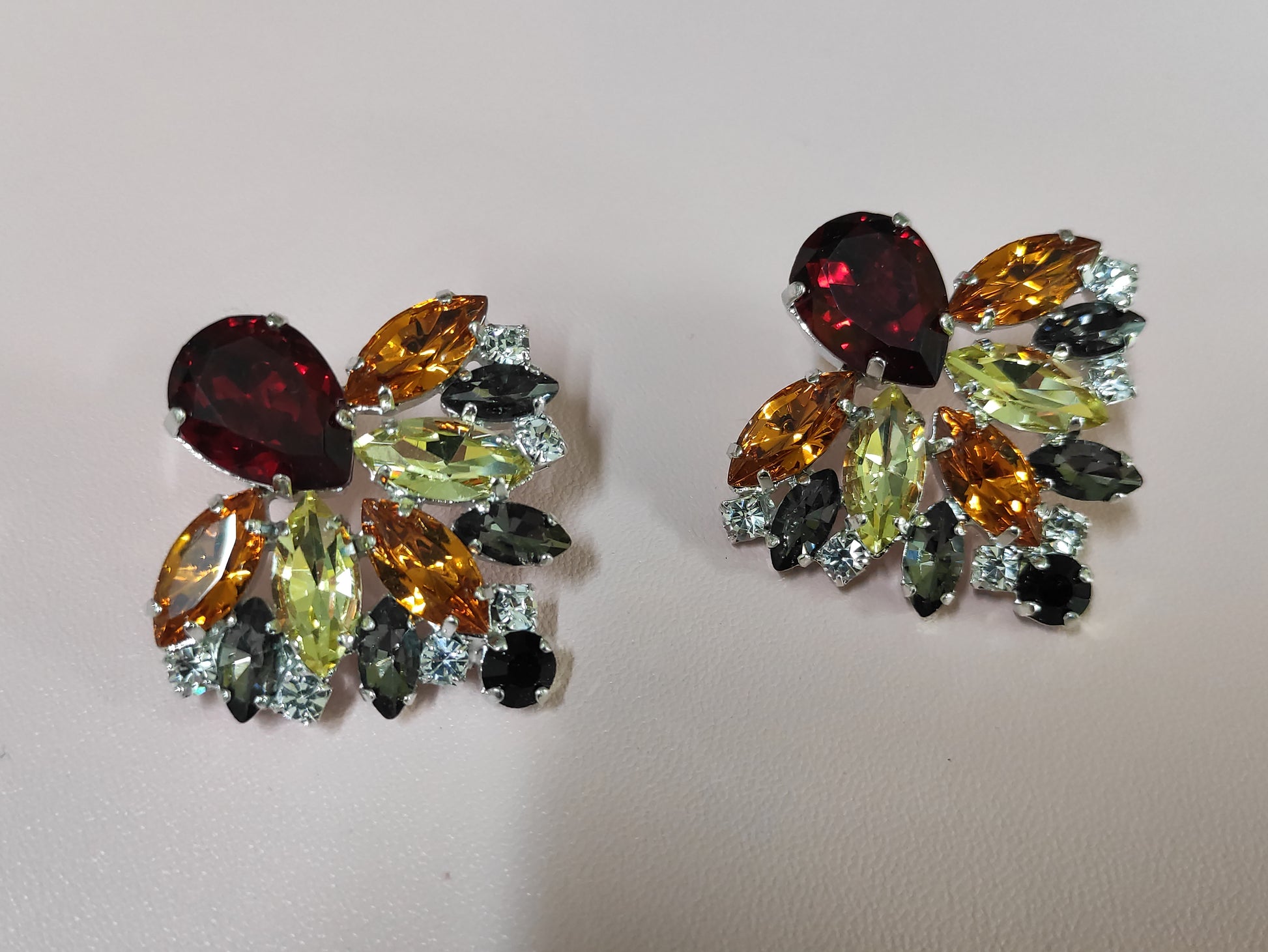 Orecchini realizzati in ottone placcato oro o argento con lega in stagno, impreziositi da strass e pietre Swarovski, galvanica nickel free.