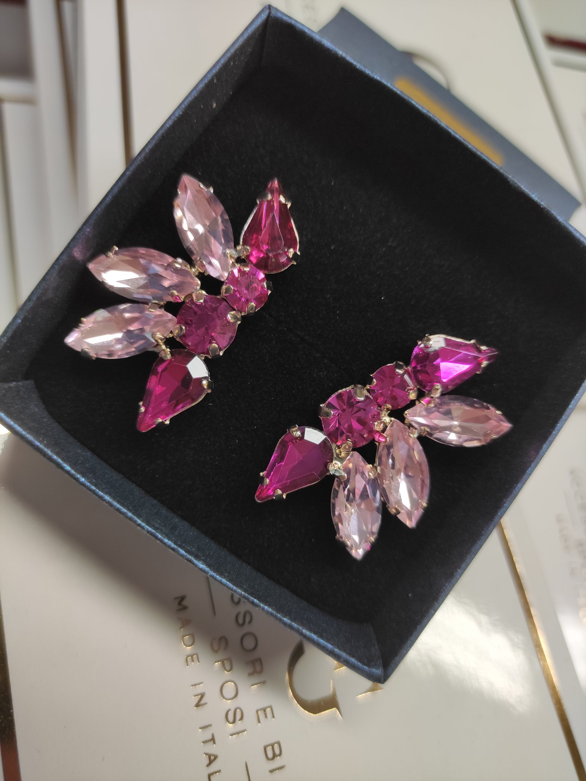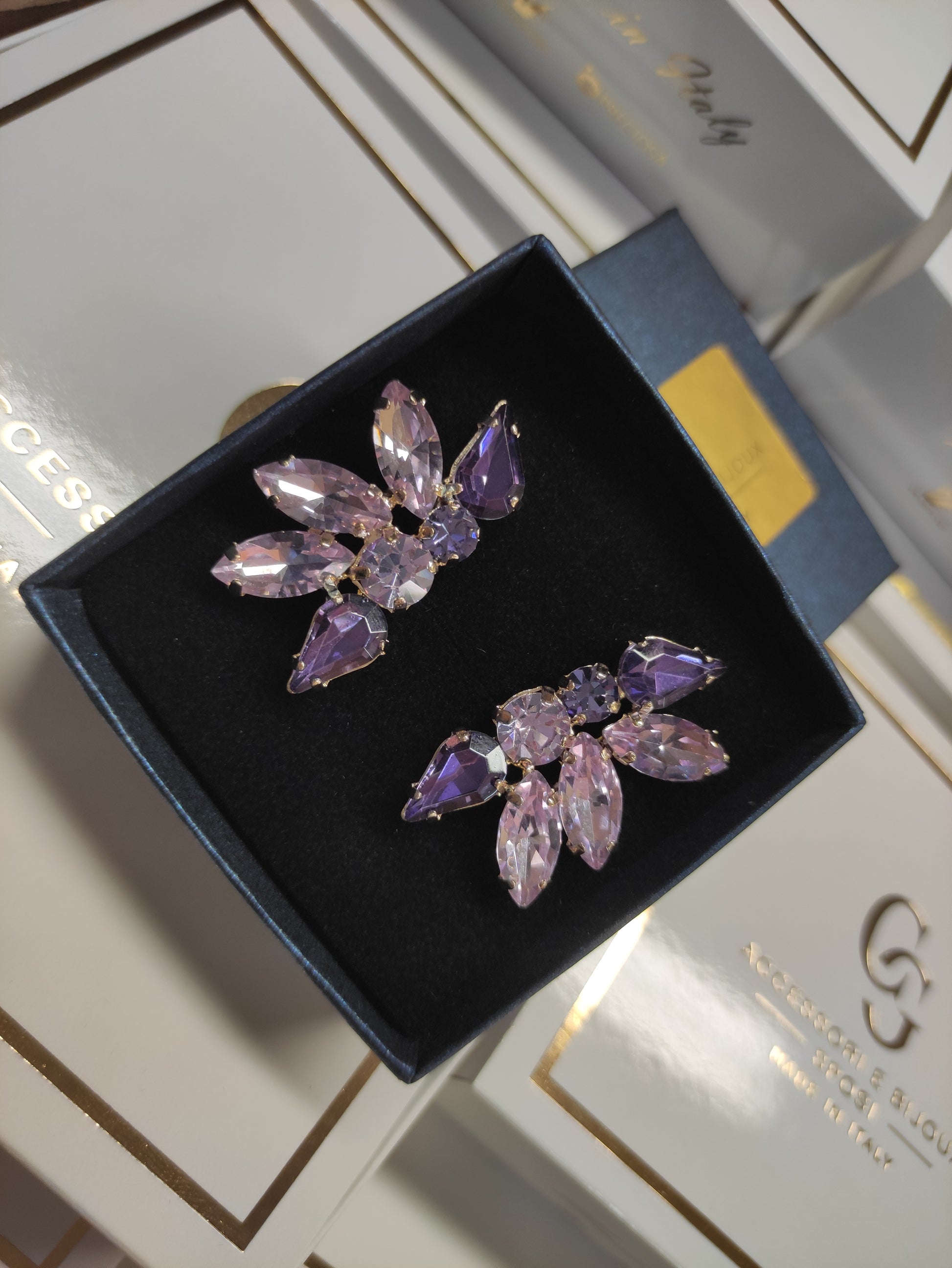 Orecchini realizzati in ottone placcato oro o argento con lega in stagno, impreziositi da pietre castonate Swarovski, galvanica nickel free.