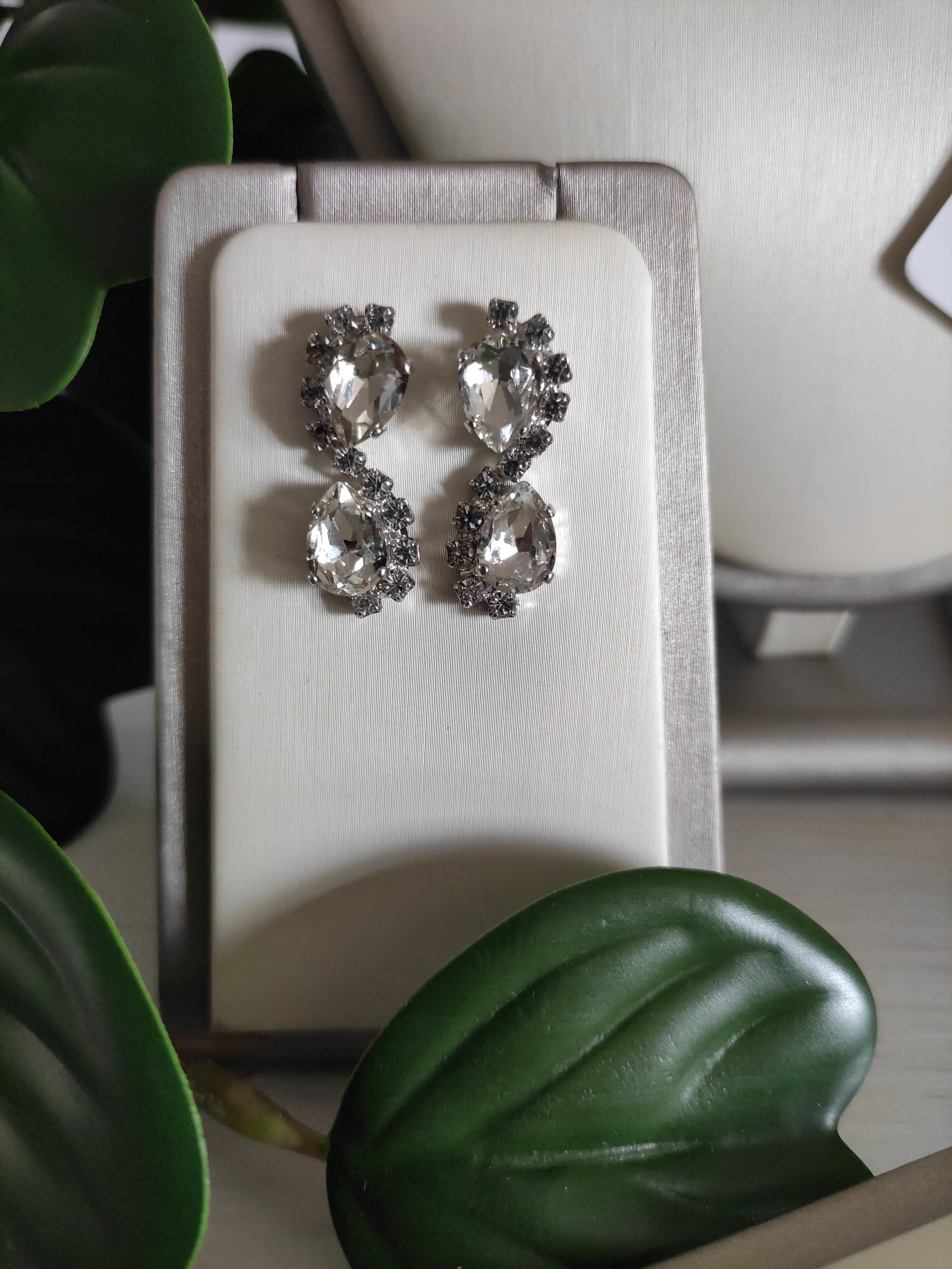 Orecchini realizzati in ottone placcato oro o argento con lega in stagno, impreziositi da strass e pietre Swarovski, galvanica nickel free.