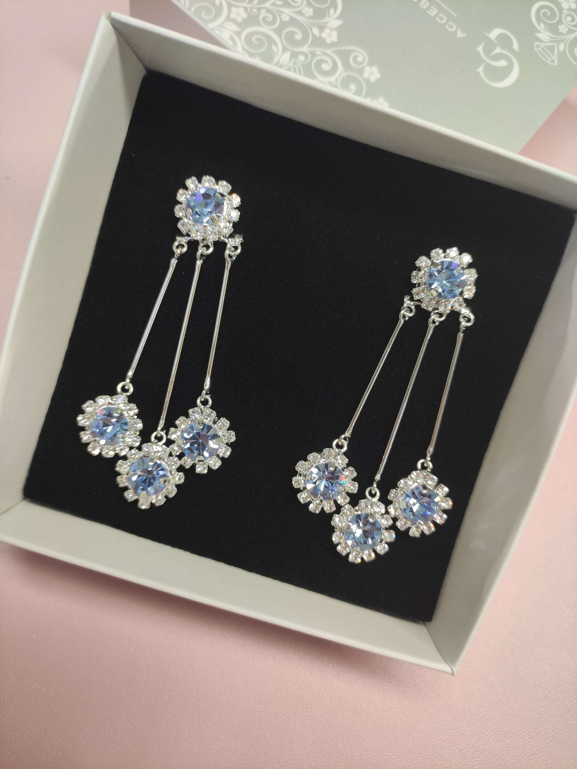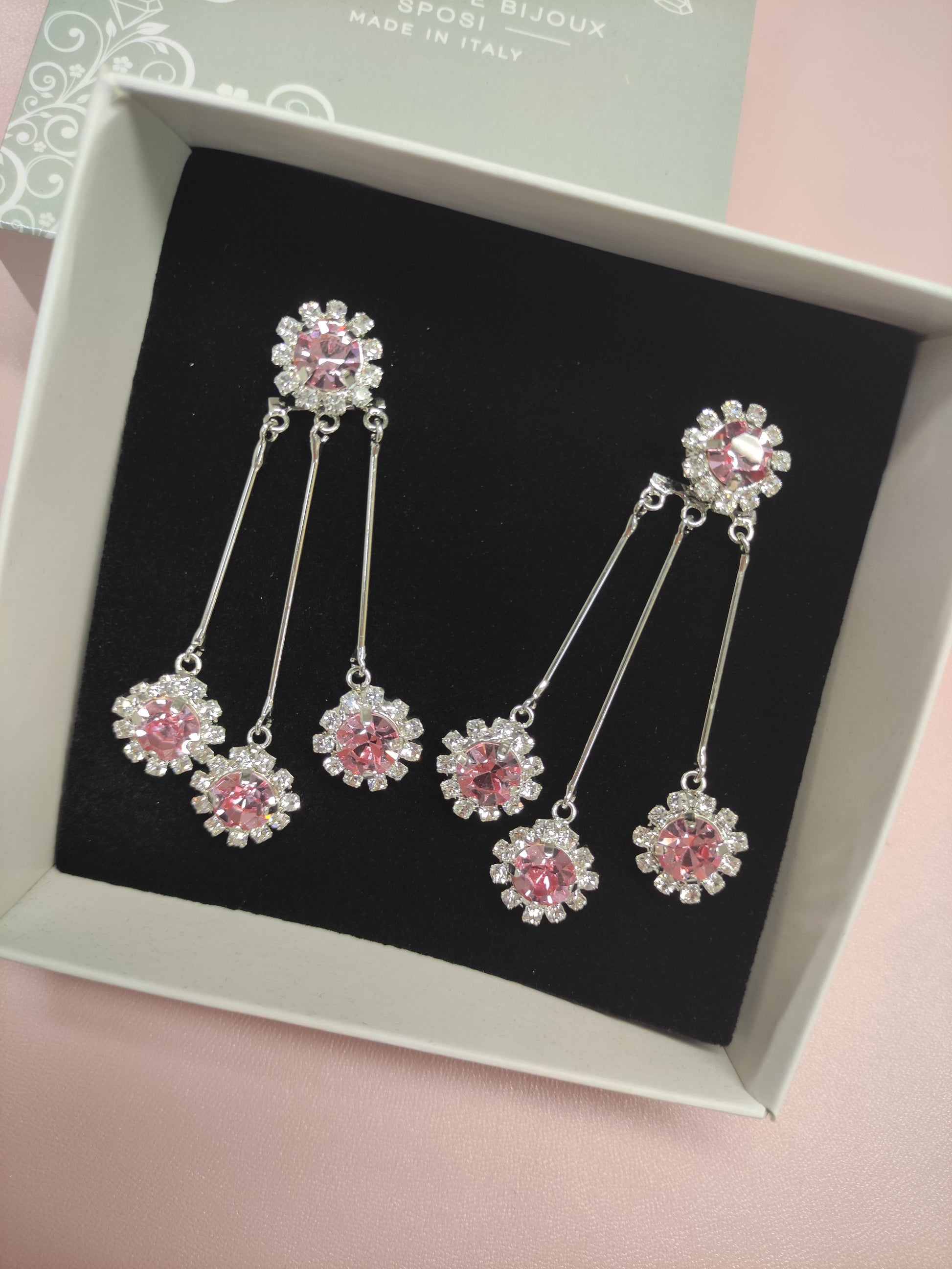 Orecchini chandelier effetto pearcing realizzati in ottone placcato oro o argento con lega in stagno, impreziositi da strass e pietre Swarovski, galvanica nickel free.