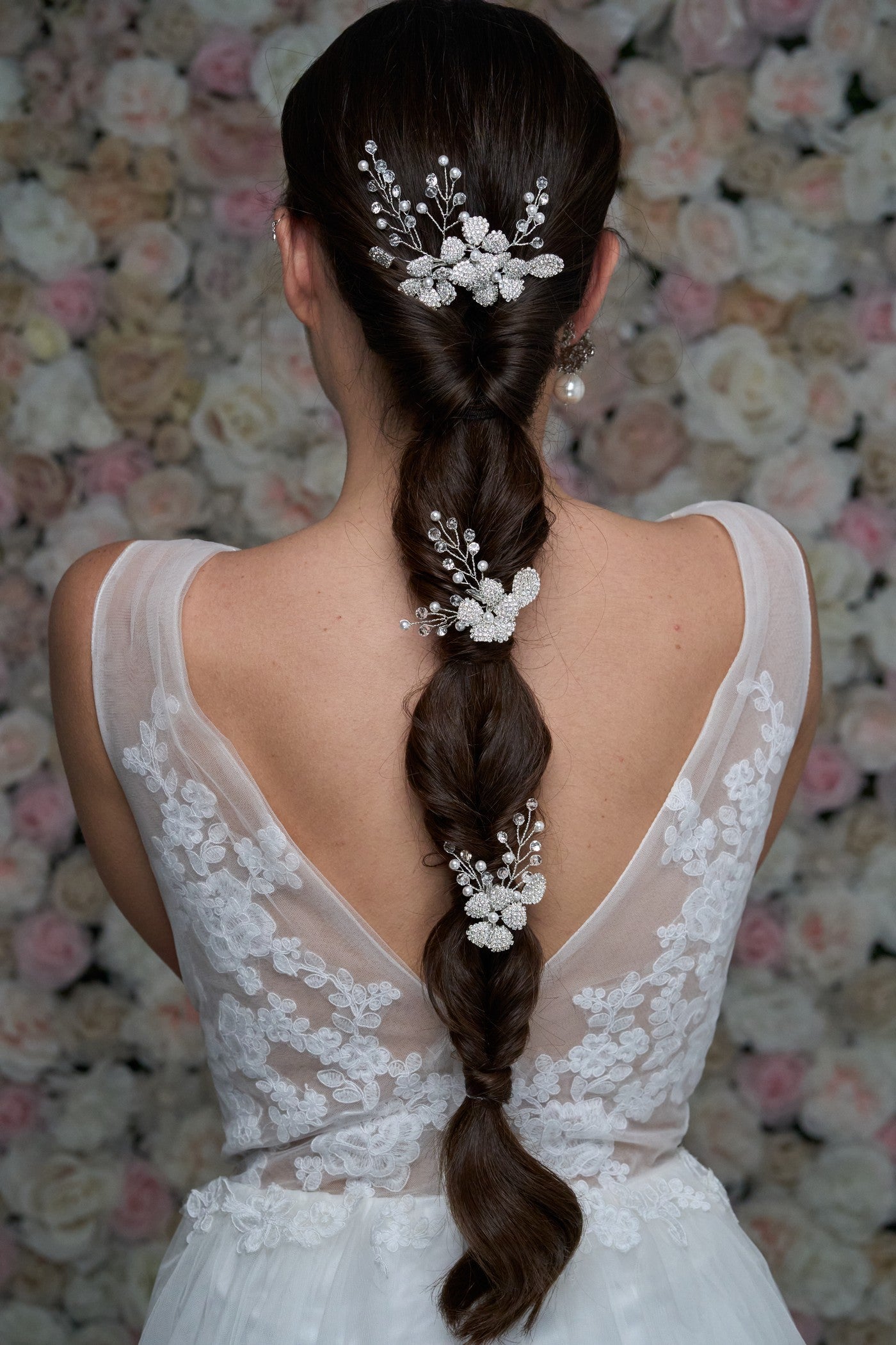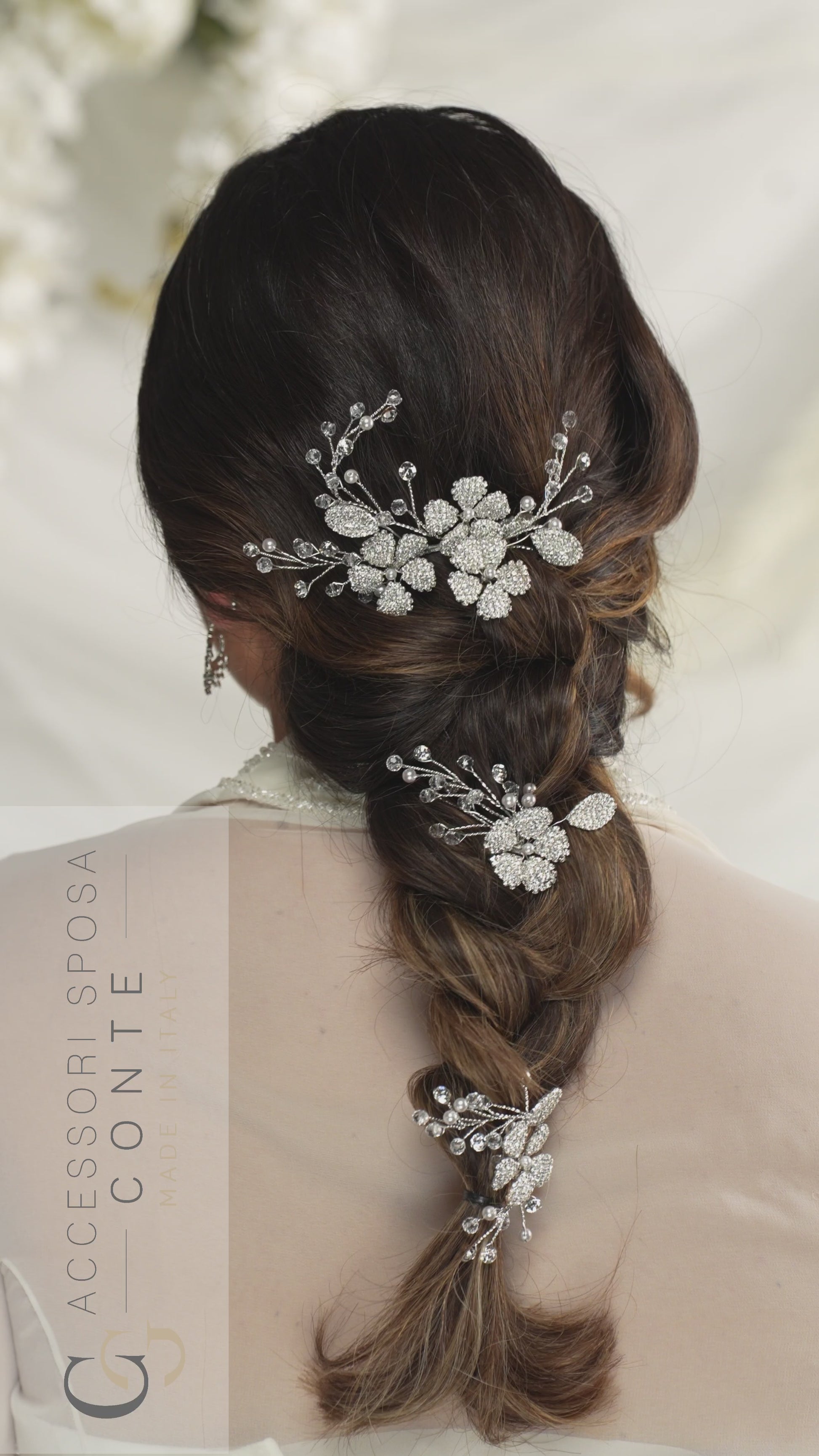Set Accessorio bijoux composto da un pettine e due mollettine ideale per acconciature intrecciate o per proporre un cambio look, lavorazione con cristalli, perle e strass swarovski, fatto a mano, made in italy, personalizzabile.