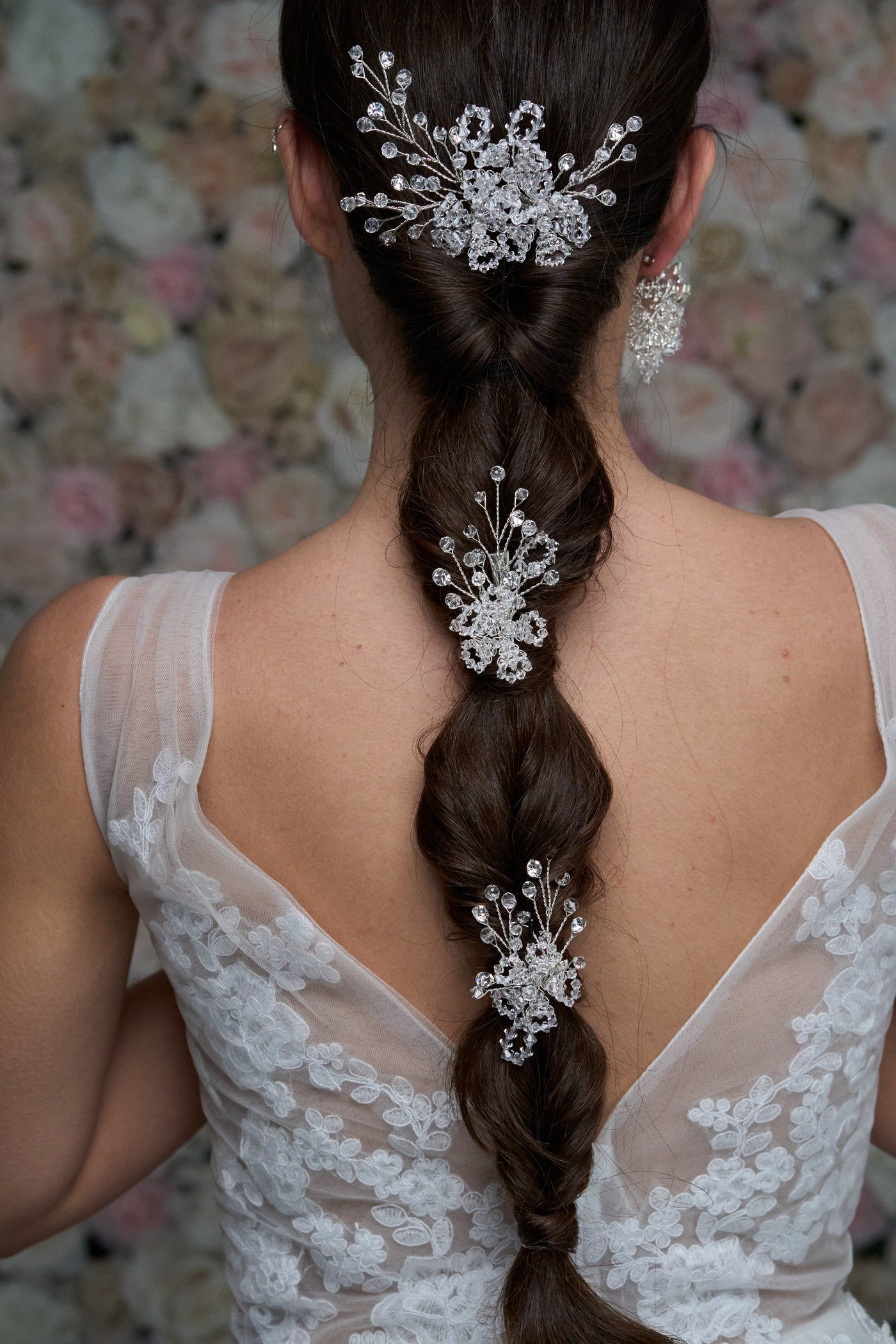 Set Accessorio bijoux composto da un pettine e due mollettine ideale per acconciature intrecciate o per proporre un cambio look, lavorazione con cristalli e strass swarovski, fatto a mano, made in italy, personalizzabile.