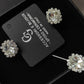 Gemelli da polso per camicia e spilla abbinata, in strass Swarovski e Preciosa, con lega in stagno, base ottone, placcato rodio, nichel free.