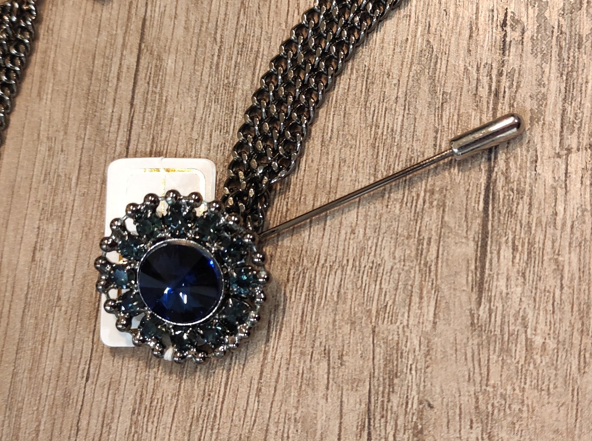 Tripla catenina da giacca con applicazione bijoux in strass, realizzata a mano con lega in stagno e galvanica nichel free. Made in Italy personalizzabile