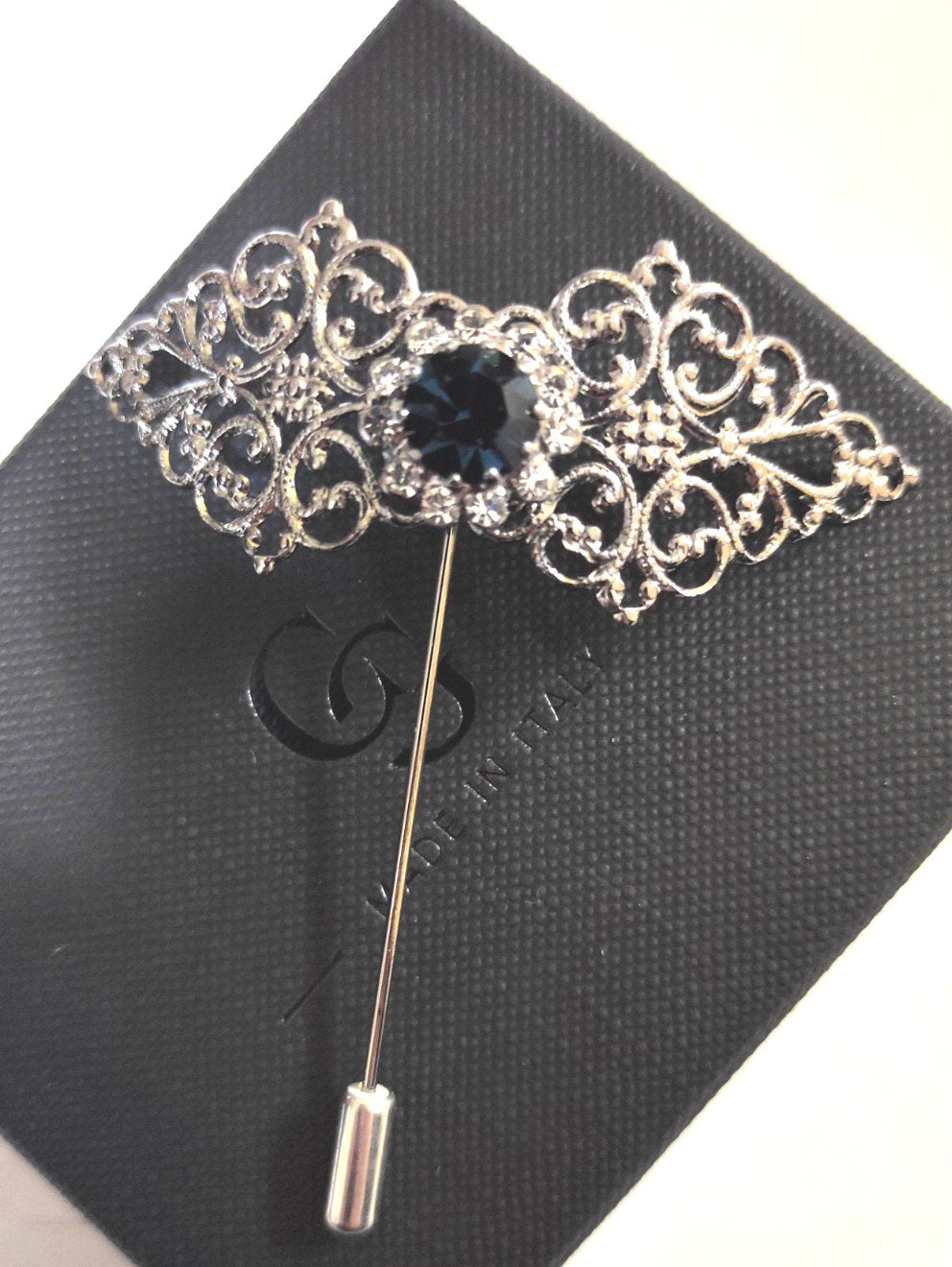 Spilla per plastron, con doppia filigrana in ottone e gioiello in strass swarovski con lega in stagno e galvanica nichel free. Made in Italy. Personalizzabile